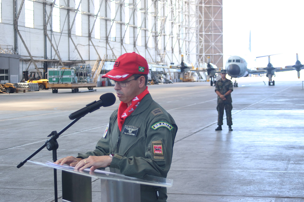 Ainda, ressaltou o trabalho vital do Grupamento Logístico de Santa Cruz na manutenção das aeronaves P-3 e Heron; destacou o apoio das unidades da GUARNAE-SC; e fez menção especial aos pilotos e tripulantes, citando que “vocês são a essência deste Esquadrão e a Força Aérea será tão boa quanto vocês”.